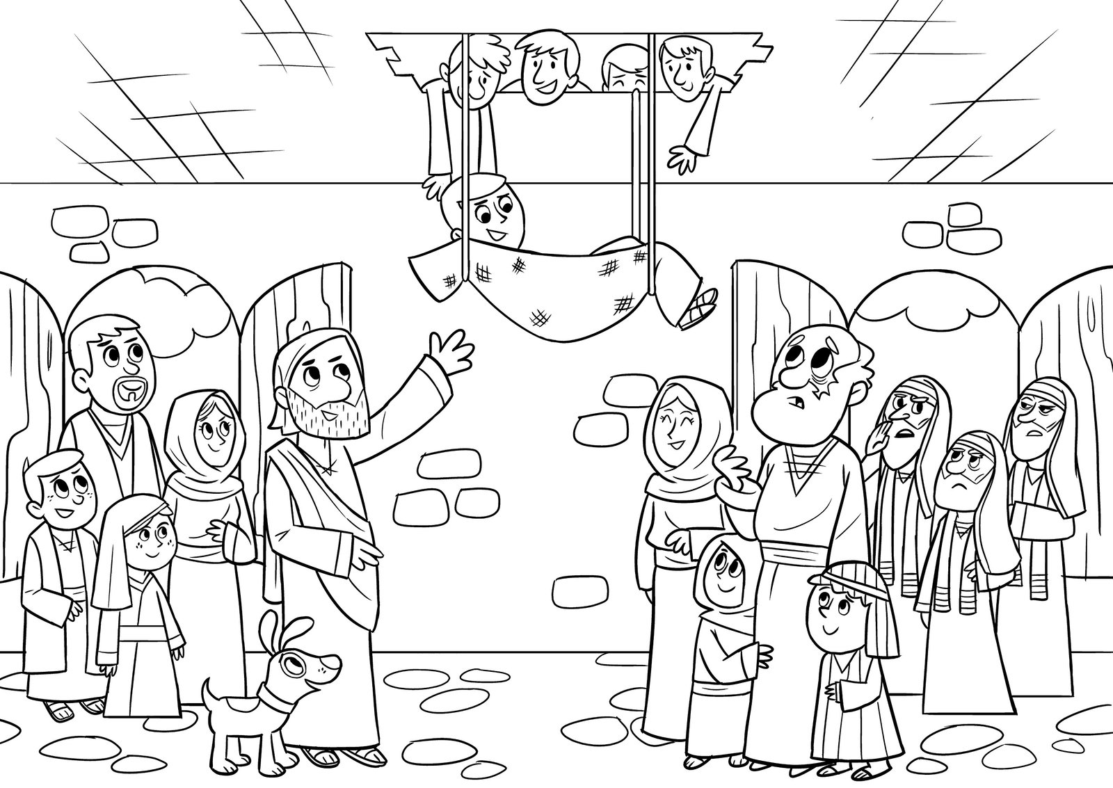 Click on link below for activity sheet which has lots of ideas of games and rhymes and includes a template to make a split pin man. You can talk about what it would be like to be unable to move (play the sleeping lions game) and how it would feel to be able to jump up and praise God! Thank God together that nothing is too difficult for him.